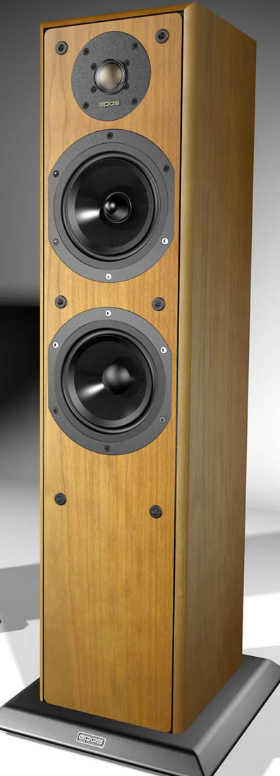 The cabinet itself is a low diffraction design, eliminating secondary sources of sound, improving stereo imaging and detail resolution. Extensive internal bracing reduces cabinet coloration. The cabinet is in two sections internally—the top section houses the tweeter and mid range and is similar in size to the Epos M12.2, whilst the lower section housing the bass unit goes right to the floor and ensures accurate low frequency performance.